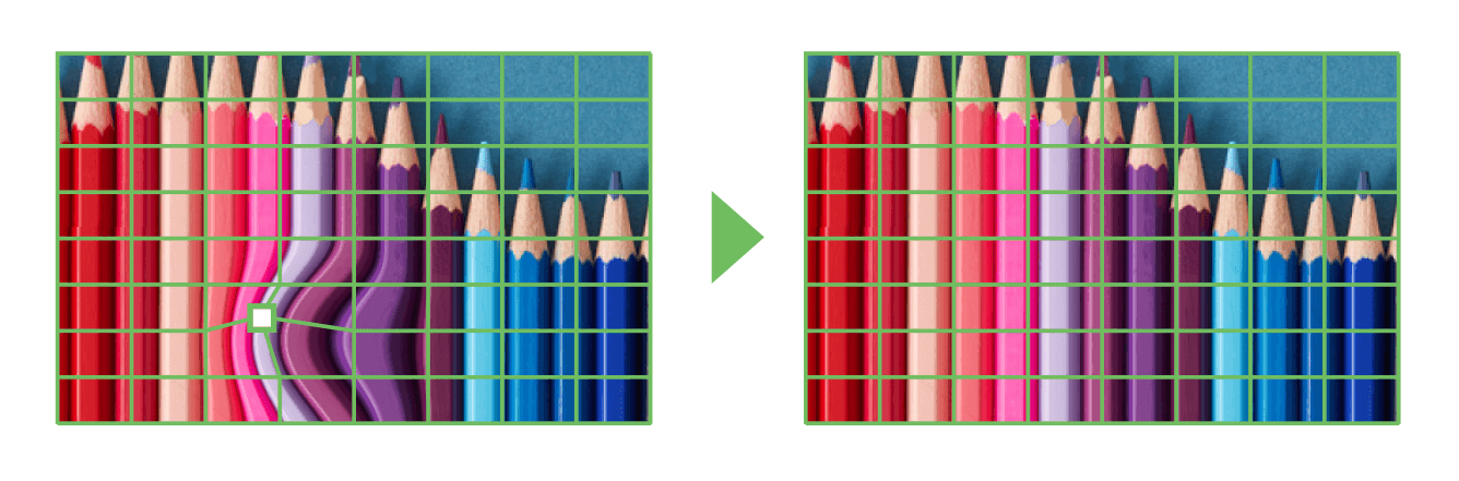 コーナーや角柱への投映時にできる歪みを、補正することができます。
