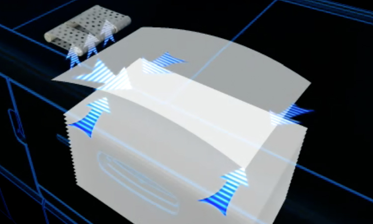 エアピック式A3LCT RT5120は送風によるさばき効果に加え、用紙上面をエアで1枚ずつ吸着することで密着しやすいコート紙やアート紙の用紙搬送がよりスムーズに。重送(多枚送り)や不給紙の発生を低減します。さらに、インサートフィーダー CI5040も送風によるアシスト給紙を採用し、コート紙や厚紙の連続挿入を実現しています。