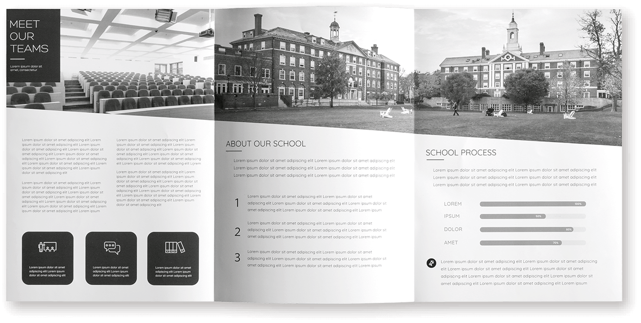 多彩なサイズの出力紙を二つ折り、外三つ折り、内三つ折り、単純四つ折り、観音四つ折り、Z折りすることが可能です。また、二つ折り、外三つ折り、内三つ折りは3枚まで重ね折り*することができます。ダイレクトメール作成時などの折り作業工程を自動で行なうことで、業務負荷低減に貢献します。
