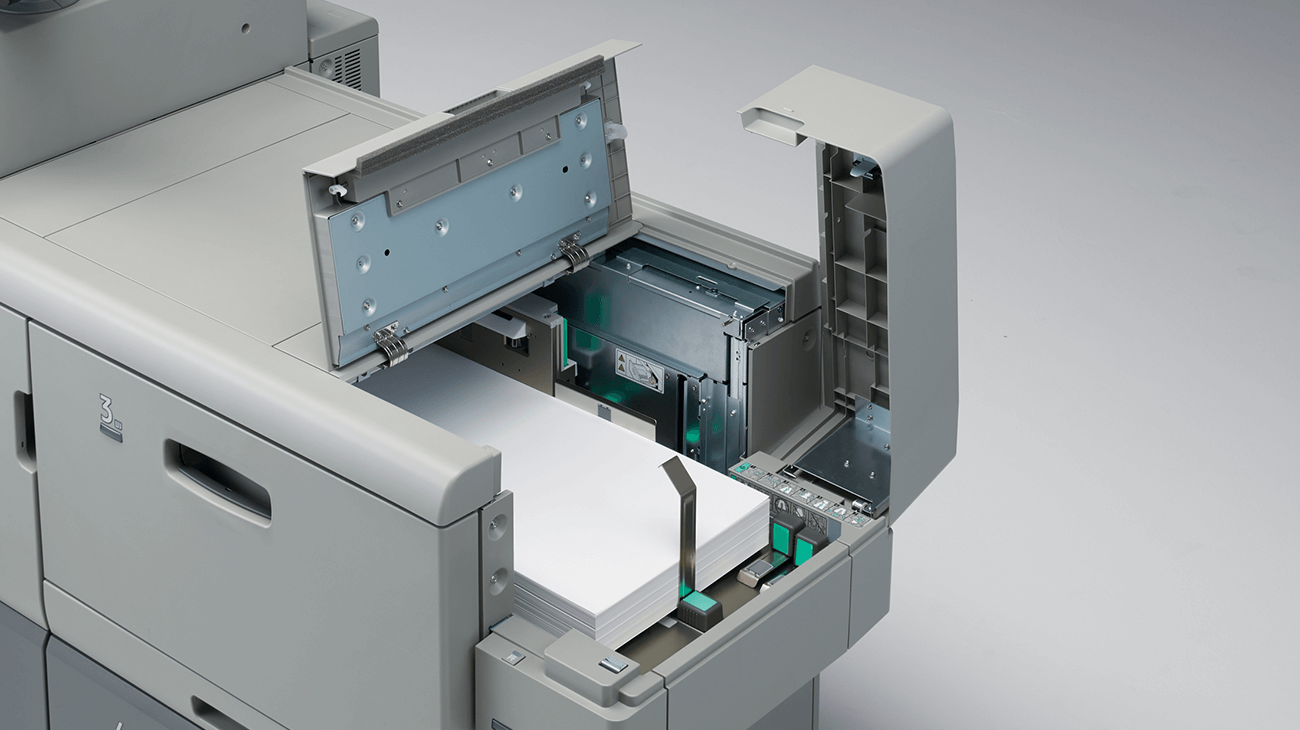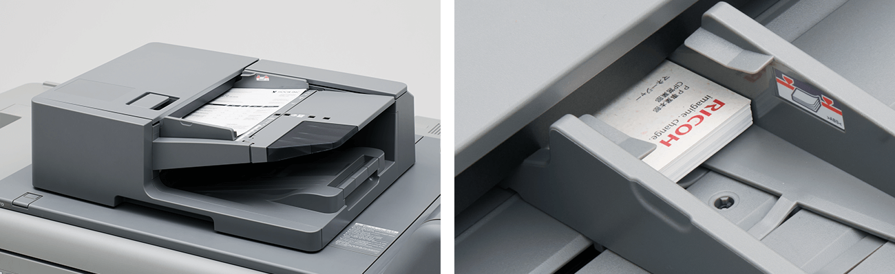 スキューと主走査のレジストを別々に制御するリコー独自のレジスト調整機構を搭載。突き当て方式によりスキュー補正精度が向上。コンタクトイメージセンサーで白紙はもちろん濃色紙やプレプリント紙でも正確に用紙端部を検知して補正量を検出し、レジストローラーを移動させることで優れた横レジスト精度を実現しています。