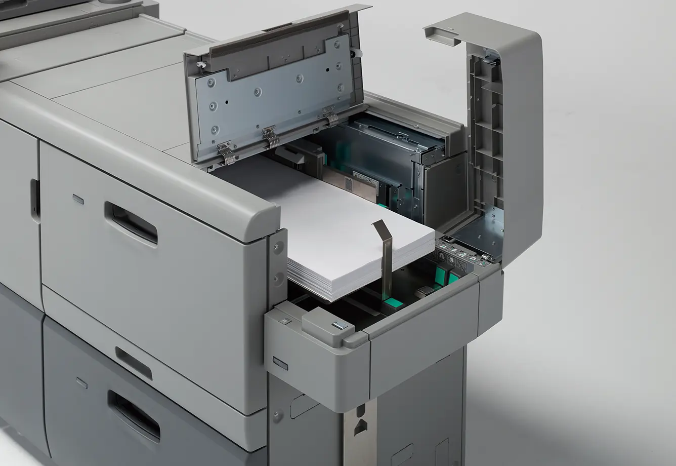 最大5,000枚(2,500枚×2段)*の給紙が可能です。一度にたくさんの出力が必要な場合や多様な用紙銘柄を使用する場合に用紙を補給する手間を軽減します。