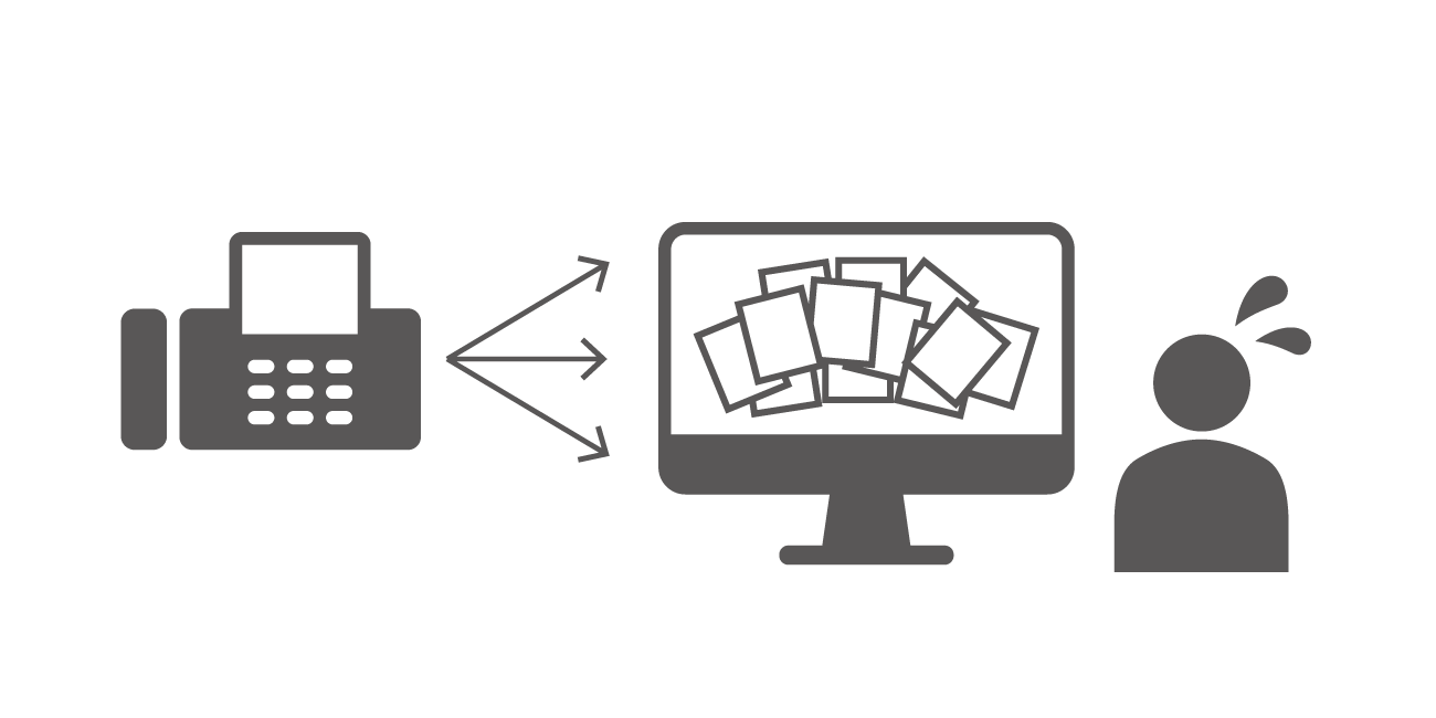 ペーパーレスFAX等による受注業務は、注文書の引取・保管、担当者への振り分け、メール・FAXでの返信など複数の業務が発生し、業務のつなぎには人手が介在している。