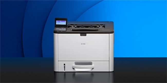「RICOH SP 3700 在宅プリントパッケージ」なら、毎月定額*で、会社と同じセキュアなネットワークとプリンターを提供いたします。