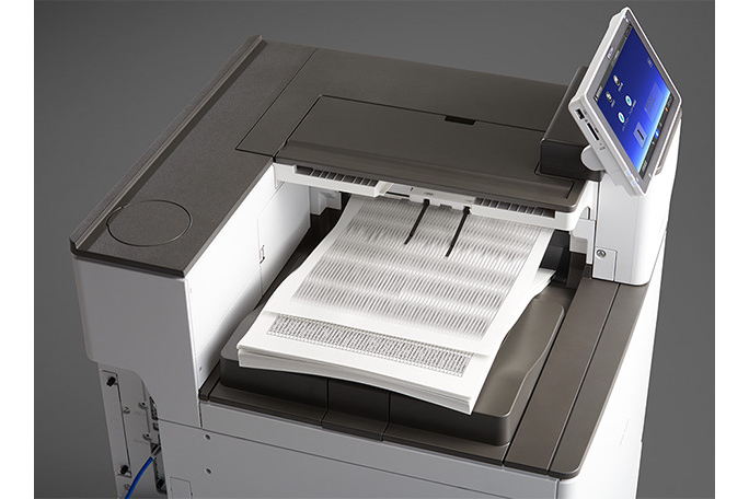 特殊用紙への印刷を事前に検証できる、プリントの実験室。ミシン目の入った用紙、ラベル紙、圧着紙など、お客様から特殊用紙を使用したいというご要望に応じて、「検証センター」で事前に印刷テストを実施。導入前に、問題点の抽出や解消のための改善提案をいたします。