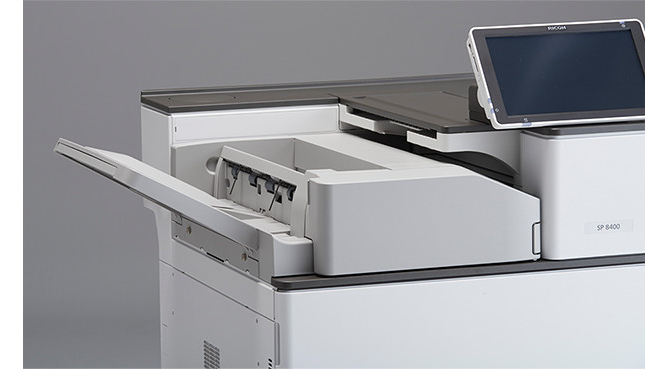 両面搬送機構を本体内側にレイアウトしたコンパクト設計。また、紙折り中継ユニットなども胴内に装着でき、オフィスを広々と使うことができます。