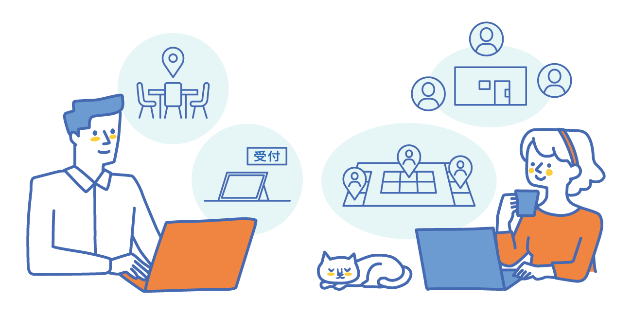 会議室予約、オフィス座席予約や受付対応など、ビジネス空間を一元管理してワークプレイスを効率良く運営。オフィスに関わるすべての人に向けて、よりスマートで働きやすい環境の提供を可能にします。
