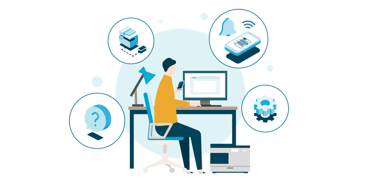 RICOH Support Stationはお客様が社内や在宅勤務で印刷・スキャンをするときに滞りなく仕事を進められるようにするための無償のサポートツールです。