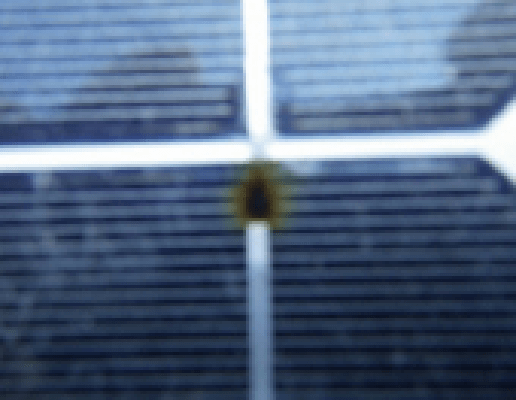 赤外線サーモ試験でモジュールの一部に焦げている箇所を発見。