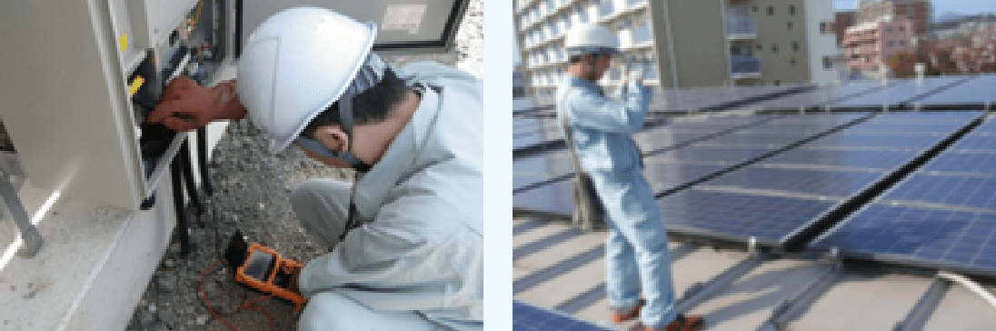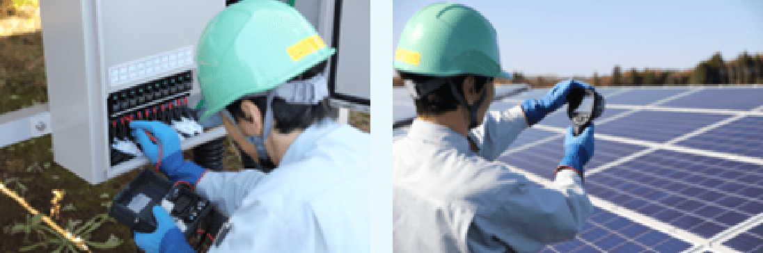 Aアラート監視、障害駆付け対応、年次定期点検を標準メニューとしております。また、月次巡視目視点検や、PCS稼働有無確認、定期レポート、パネル性能点検などのオプションメニューや、除草、パネル洗浄などの発電量回復のためのサービスもご提案しております。