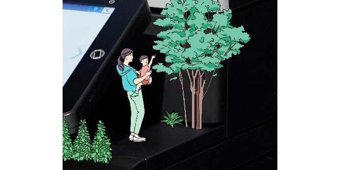 普段から自然に環境意識を高められるよう、用紙削減率などを表示するウィジェットをご用意。