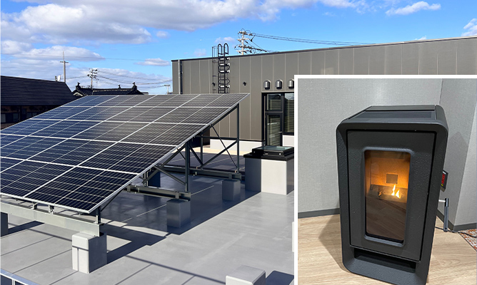 太陽光発電+蓄電池による有事の際のBCP対策と「RICOH Smart MES*」で消費電力量を抑制しつつ快適性を実現。省エネと脱炭素化に貢献しながら、人と環境にやさしいオフィスづくりにチャレンジしています。