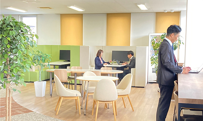 固定席に捕らわれず、働く場所を選ぶ。仕事の内容に合わせた環境を選択しながら、仕事の効率化により業務生産性を高めます。