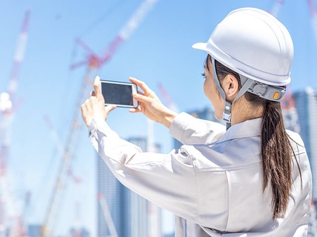 リコーの「工事写真撮影・管理パック」なら、工事写真に関する一連の業務を、効率化できます。まずはスマートフォンのアプリから工事情報を入力し、そのまま現場を撮影。小黒板は使わないため、それを持つ人手も要らず、一人で撮影が可能です。撮った写真データはすぐさまクラウドに保存されるので、あとから画像を取り込む手間もありません。そして、入力しておいた工事情報に基づき、自動で仕分けまでしてくれます。現場や事務所での作業時間を大幅に圧縮しながら、データへのアクセス性も向上。国が推進する新技術(NETIS)も活用できるため、対象案件の入札時には工事評点もアップします。