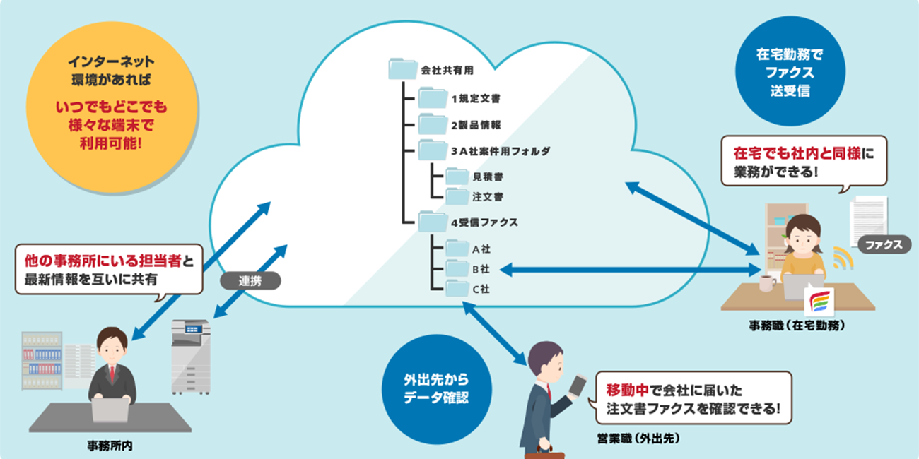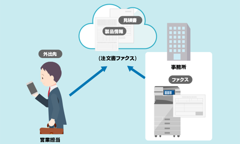 注文書ファクスや見積書の確認のために事務所に戻っていませんか? 社内外でデータ共有パック