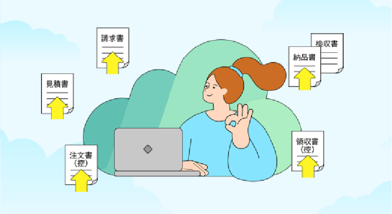 対象証憑:[受領/発行]請求書、領収書、納品書、見積書、注文書、注文請書、検収書、および電子取引情報