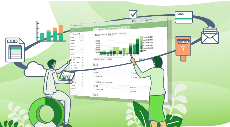 取引書類の作成・送付・入金管理業務が全てWeb上の操作で完結。送付した取引書類は、自動で電子保存。