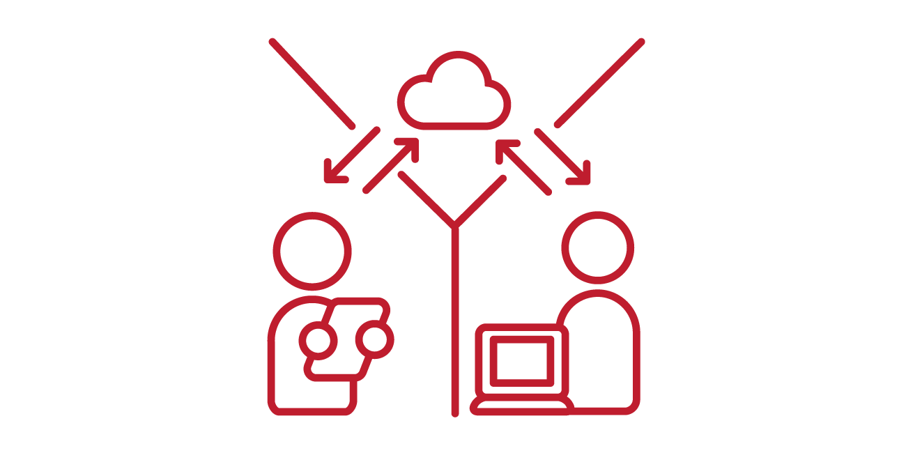社員はモバイルパソコンやスマートフォン、リモートアクセスツールを持ち、Web会議やビジネスチャットを活用することで、働く場所に関係なくコミュニケーションを取る機会を増やしています。
