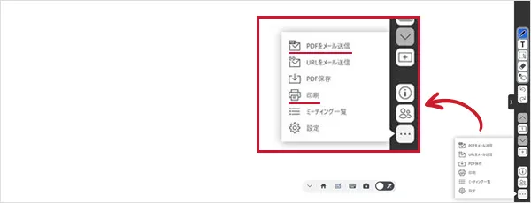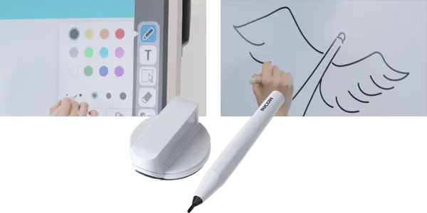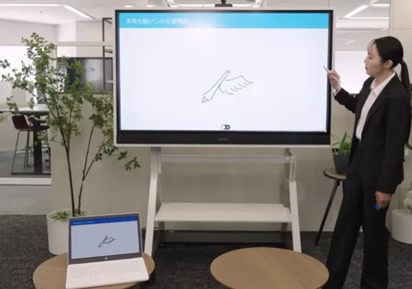 パソコンなどの端末の情報をディスプレイに表示し手書きで書き込みをしたり、Web会議を開催したり、クラウド上でリアルタイムに書き込んだ内容を共有が可能です。