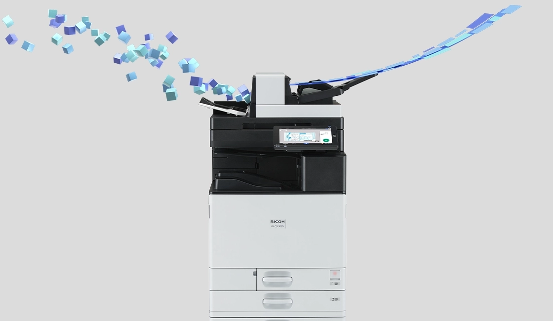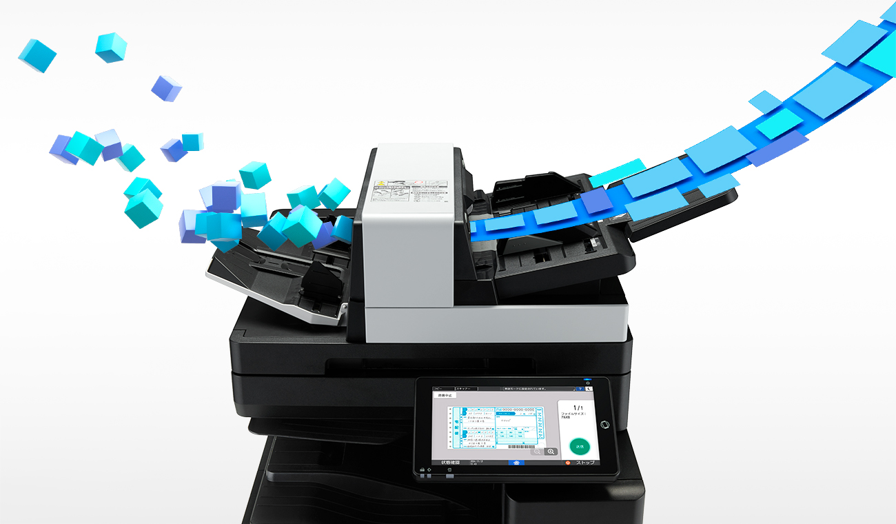 リコーの「SDモデル*1」はPFUのスキャナー技術を搭載し、従来電子化に手間がかかっていた原稿もADF(自動原稿送り装置)から読み取り可能なA3カラー複合機です。