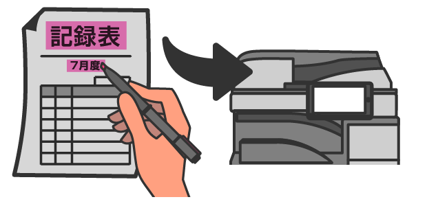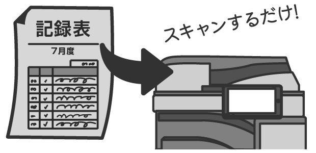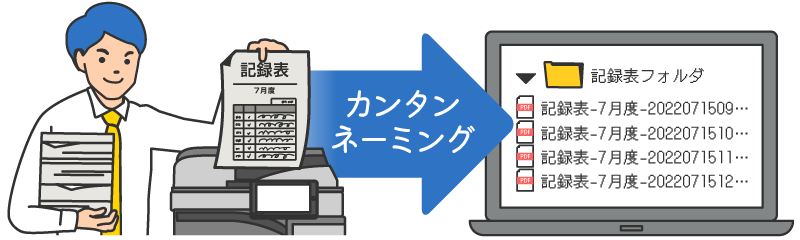 複合機でスキャンするだけ。ファイル名設定やパソコン作業なしで、だれでも簡単に電子保管できます。