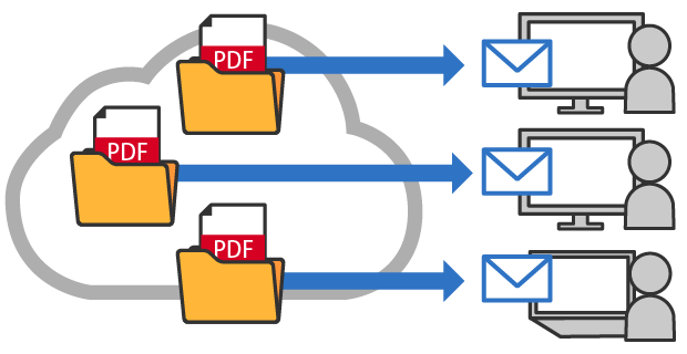 フォルダーへのアップロード時に、担当者などに自動メール通知。スピーディーに共有・活用できます。