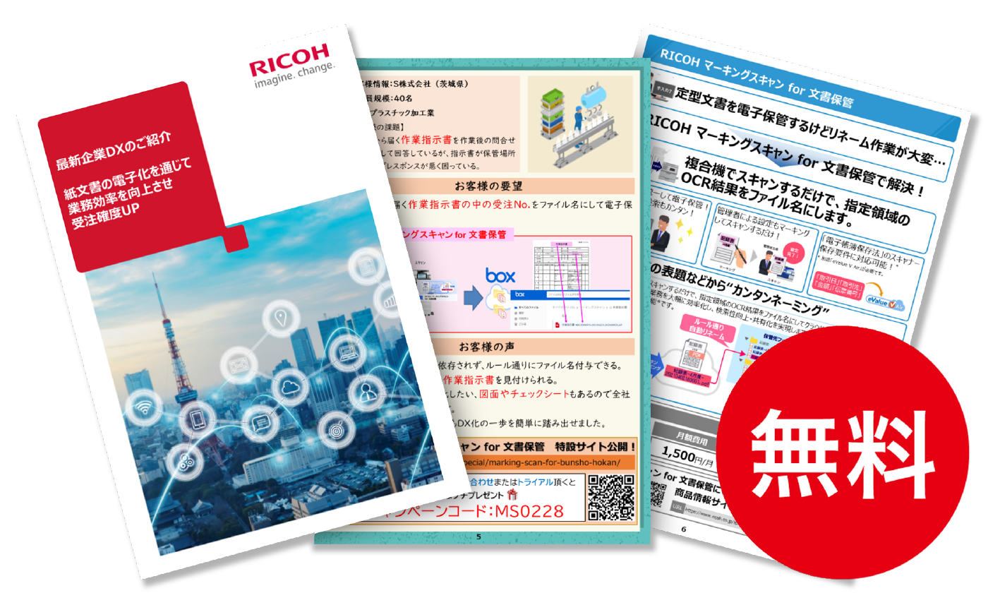 「RICOHマーキングスキャン for 文書保管」は、紙の定型文書を電子化する際のリネーム作業を自動化し、クラウドサービスへ保存を簡単に行うことができます。